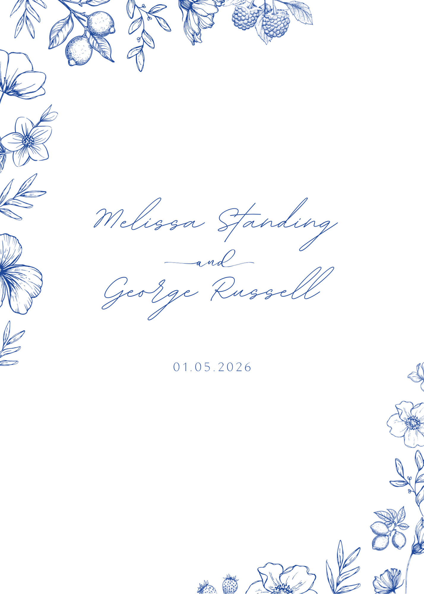 Announce your special day with our Santorini Save The Date cards, inspired by Mediterranean charm. Adorned with intricate blue botanical sketches and flowing handwritten script, capturing a refined coastal romance.