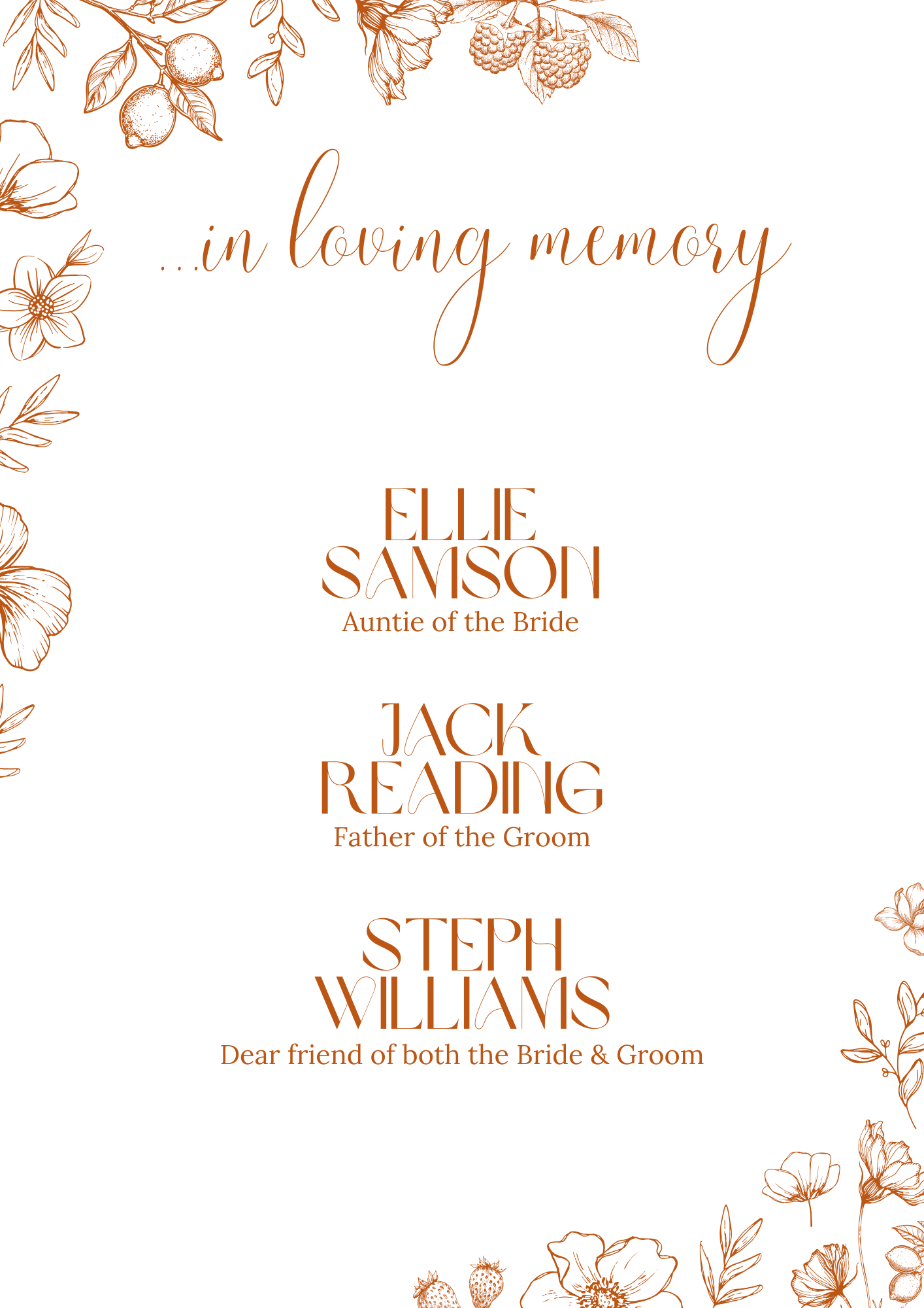 Sienna In Loving Memory Table Sign