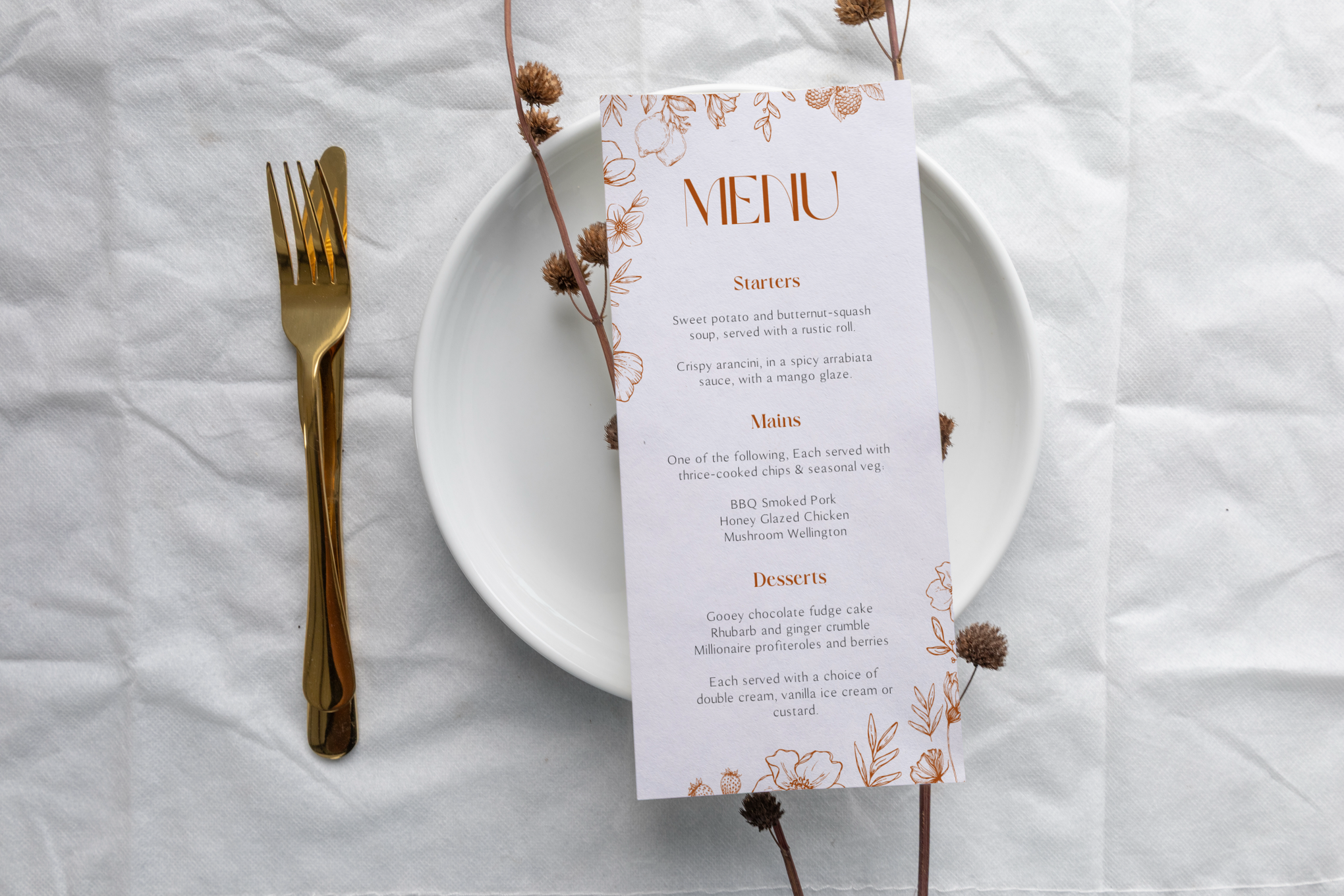 Sienna Wedding Menu