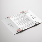 Start your celebration with timeless romance using these Pink Roses Floral Gatefold Wedding Invitations, featuring soft pink blooms and classic script that unfold to reveal your wedding details. Your unique wedding timeline, dress code, RSVP details and more are included in the design — and everything is fully customisable to suit your needs.